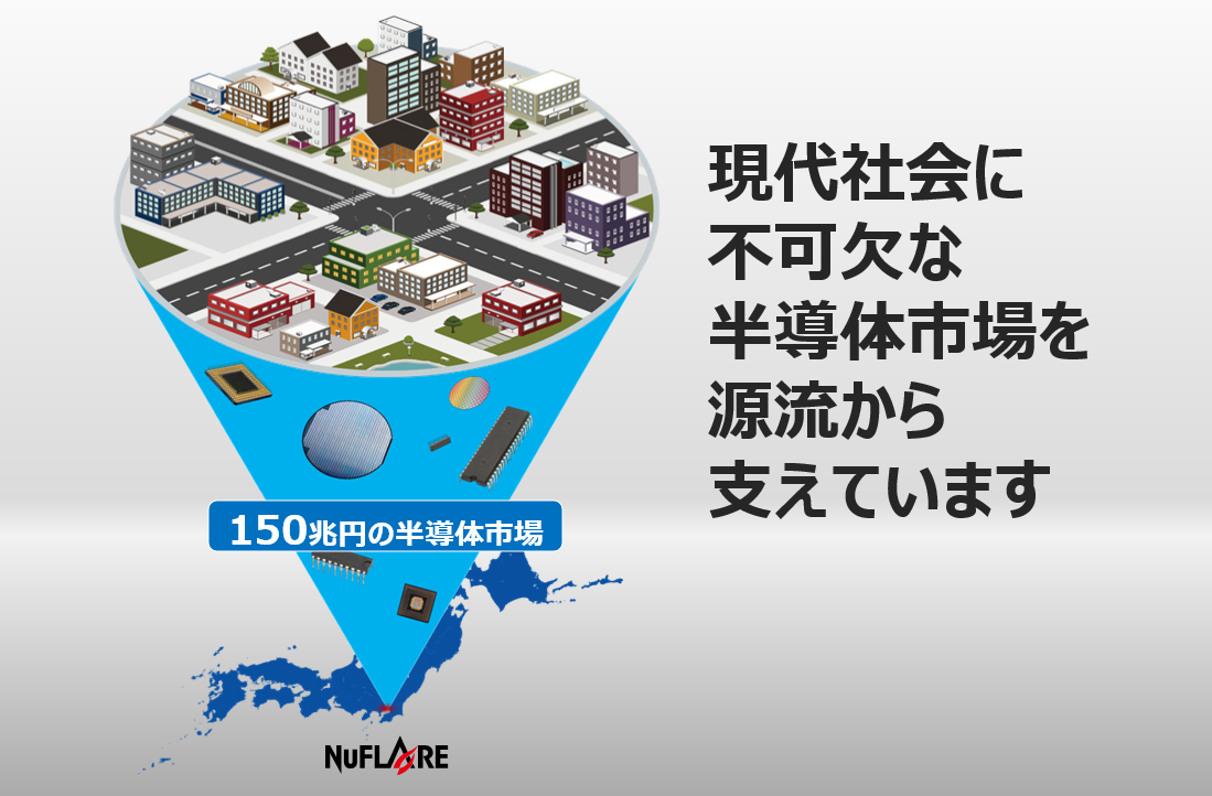 当社は、2002年の創業以来、半導体製品の製造に用いられる最先端の電子ビームマスク描画装置やマスク検査装置、エピタキシャル成長装置を開発、提供し、現代社会に不可欠な半導体市場を源流から支えています。
