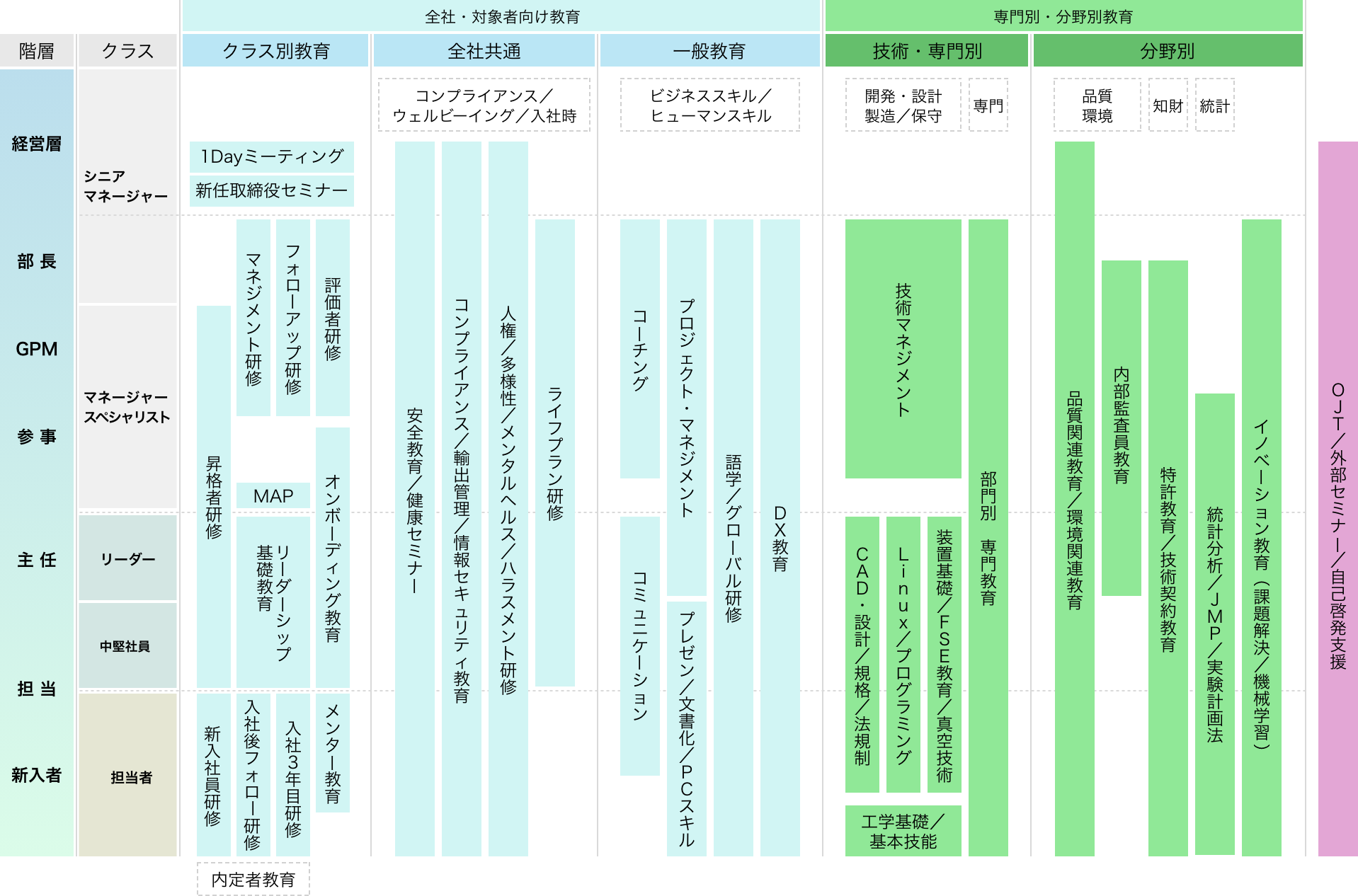 各クラス(階層)での必須教育・コースの体系図